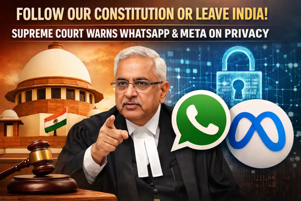 नई दिल्ली: भारत के सर्वोच्च न्यायालय ने मंगलवार को व्हाट्सएप (WhatsApp) और उसकी मूल कंपनी मेटा (Meta) को कड़ी चेतावनी देते हुए साफ कर दिया है कि वे भारतीयों के निजता के अधिकार (Right to Privacy) के साथ खिलवाड़ नहीं कर सकते। चीफ जस्टिस सूर्या कांत की अध्यक्षता वाली पीठ ने सुनवाई के दौरान सख्त लहजे में कहा कि यदि ये कंपनियां भारत के नियमों का पालन नहीं करना चाहतीं, तो वे देश से बाहर जा सकती हैं।